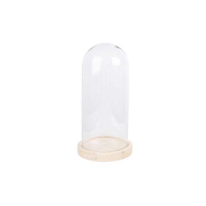 Avec ses dimensions de 13 cm de diamètre et 26 cm de hauteur, la Cloche Clayre Eef s’intègre parfaitement dans les espaces plus petits sans sacrifier son élégance. Le verre transparent contraste joliment avec les teintes naturelles du socle en bois, offrant un supplément ludique et élégant à différents décors.