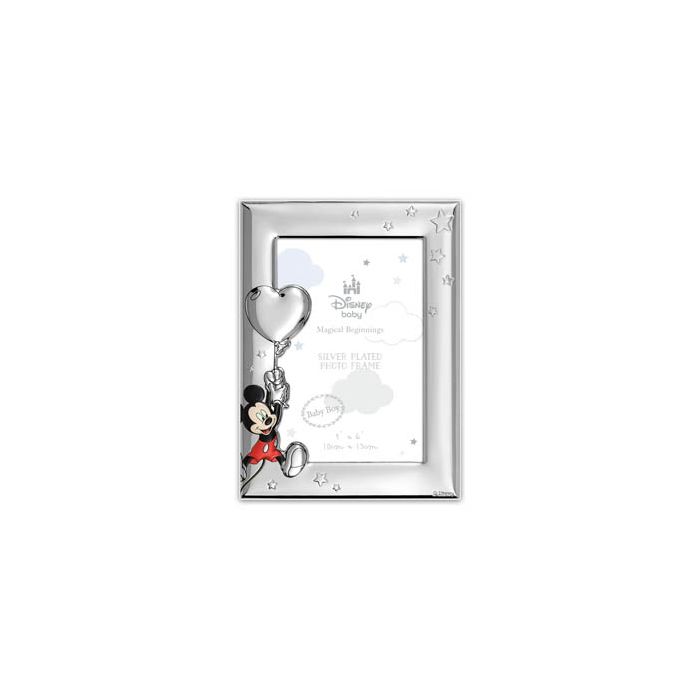 Le cadre Mickey 2, plaqué argent, au format 10×15 cm, présente une finition brillante et un motif en relief de Mickey Mouse. Idéal pour une photo de bébé, un cadeau de naissance ou un souvenir enfantin.