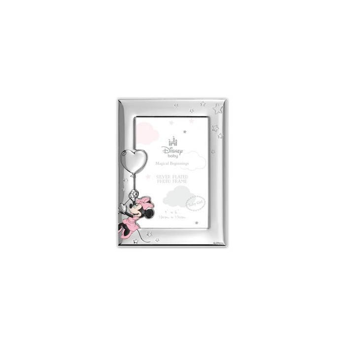 Le cadre Minnie 2, plaqué argent et conçu pour des photos 10×15 cm, présente une finition brillante et un motif en relief de Minnie. Idéal pour une photo de bébé, un cadeau de naissance ou un souvenir précieux.