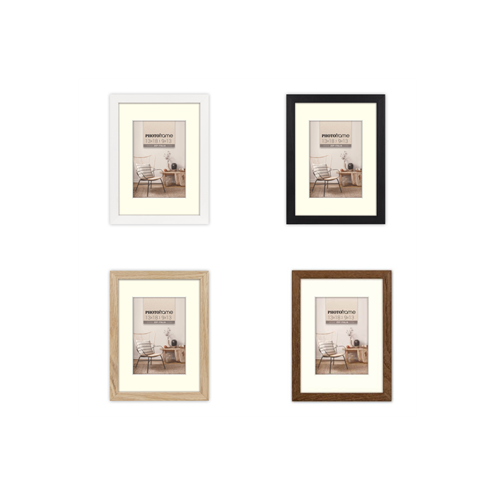 Ce pack se compose des 52 cadres photo suivants en Blanc, Noir, Naturel et Brun :