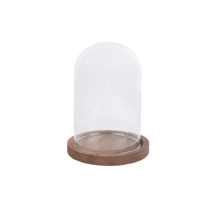 La Clayre Eef Cloche 6GL1944 Ø 12x16 cm, c'est le petit élément déco qui ajoute une touche raffinée à tous tes espaces. Ce joli dôme en verre rond, monté sur une base en bois, est parfait pour mettre en valeur des petits objets comme des plantes, des bougies ou des bijoux. Le verre transparent les met bien en lumière, tandis que le bois naturel apporte chaleur et style rustique à l’ensemble.
