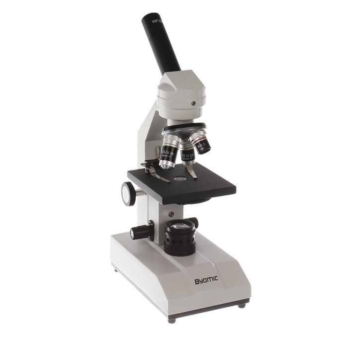Le BYO-30 se démarque grâce à son ensemble d’oculaires. Un oculaire grand champ à 10x et deux oculaires supplémentaires de 5x et 16x vous offrent une diversité d’observation. Vous pouvez également utiliser des oculaires avec différentes spécifications à condition qu’ils aient un diamètre de 23 mm. La tourelle porte-objectifs contient trois objectifs achromatiques (4x, 10x et 40x), ce qui vous permet d’atteindre un grossissement maximal de 640x. Changez les objectifs selon vos envies pour varier les niveaux de grossissement.
