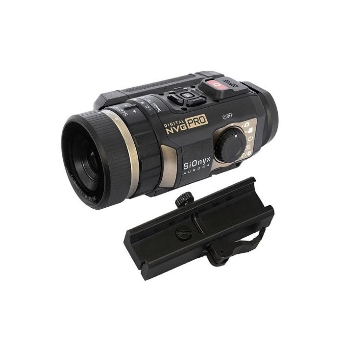 Pack complet SiOnyx avec la caméra de vision nocturne couleur Aurora PRO et le montage Picatinny. Parfait pour opérations tactiques, airsoft et navigation grâce à une vision nocturne ultra-claire, un boîtier robuste IP67 et une fixation rail solide.