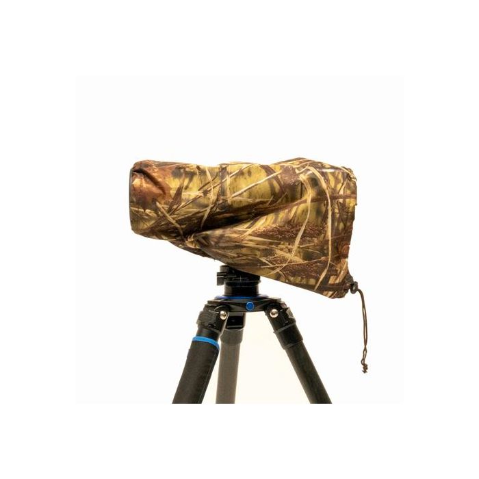 La housse pluie 1 Jonc pour objectifs de 70-200 à 300 mm offre une protection exceptionnelle à votre précieux matériel contre la pluie, la neige et la poussière. Avec un motif extérieur unique style camouflage jonc et forêt, et un revêtement intérieur noir, cette housse allie protection et discrétion.