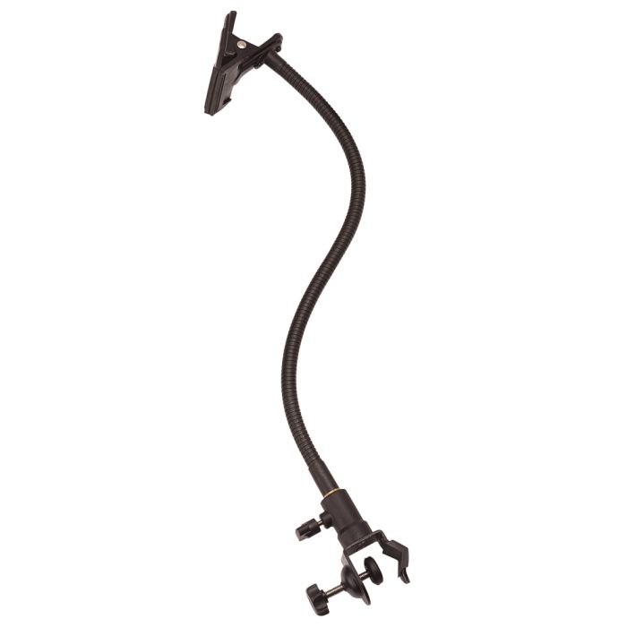 Avec sa longueur totale de 71 cm et son bras flexible de 57,5 cm, la fixation pour tube Falcon Eyes s’intègre parfaitement dans tous les studios. Sa construction métallique robuste vous garantit un support fiable et stable, même en cas d’utilisation intensive. La pince à ressort offre une largeur généreuse de 7,6 cm et son revêtement en caoutchouc assure que tout ce que vous fixez reste bien en place, sans rayures ni glissements indésirables.
