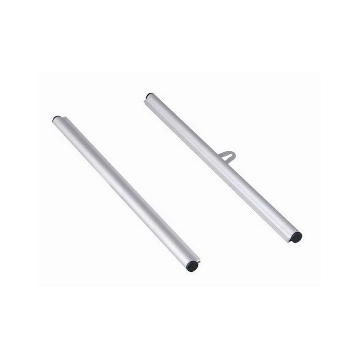 À la livraison, vous recevez tout le nécessaire pour démarrer immédiatement : deux tubes en aluminium robustes de 1,40 mètre, deux bandes noires pratiques, deux crochets de suspension et quatre bouchons plastiques pour une protection maximale de votre papier de fond ou de votre affiche.