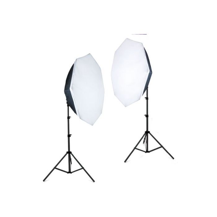 Avec ce kit haut de gamme, vous recevez non seulement les supports avec les lampes, mais aussi des trépieds robustes et fiables de 2,40 mètres de hauteur. Ajoutez à cela les deux octobox OB-7 de 70 cm de diamètre et vous disposez de tout le nécessaire pour éclairer parfaitement chaque scène, des portraits doux aux prises de vue produits intenses.