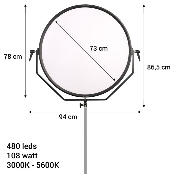 Le SO-108TDX de Falcon Eyes propose une solution LED moderne qui diffuse une lumière exceptionnellement douce. Plutôt que des LEDs séparées, cette lampe émet un nuage de lumière uniforme. Avec une puissance de 108 watts, le SO-108TDX projette la lumière dans un angle de 65 degrés, tandis qu’un indice de rendu des couleurs élevé de 95 garantit une restitution naturelle des couleurs. L’écran tactile intégré vous permet de régler la luminosité de façon continue et d’ajuster la température de couleur de 3000K à 5600K. Utilisez l’adaptateur secteur fourni ou optez pour une batterie v-mount en option pour encore plus de flexibilité.