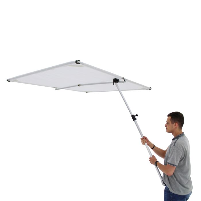 À la livraison, vous recevez tout ce dont vous avez besoin. Le kit comprend 1 Flag Panel transparent CR-B1520T, un bras articulé pratique avec support correspondant pour une installation flexible, ainsi qu’un sac de transport robuste pour faciliter vos déplacements.