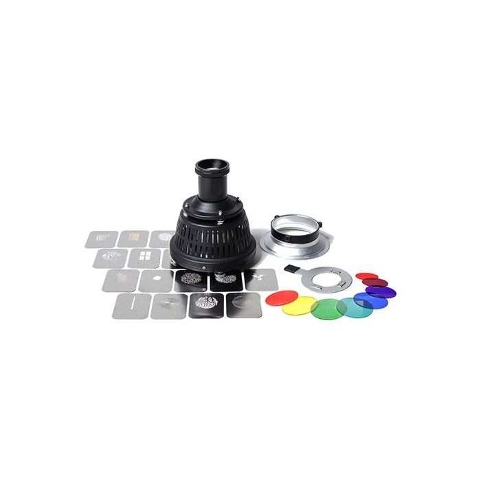 La livraison du FTA-OS3 inclut tout ce dont vous avez besoin pour démarrer vite : un snoot avec lentille optique, 6 filtres couleur, 16 gobos (motifs), un porte-gobo et une bague adaptatrice Bowens/Linkstar. Vous êtes prêt à expérimenter et à créer dès maintenant.