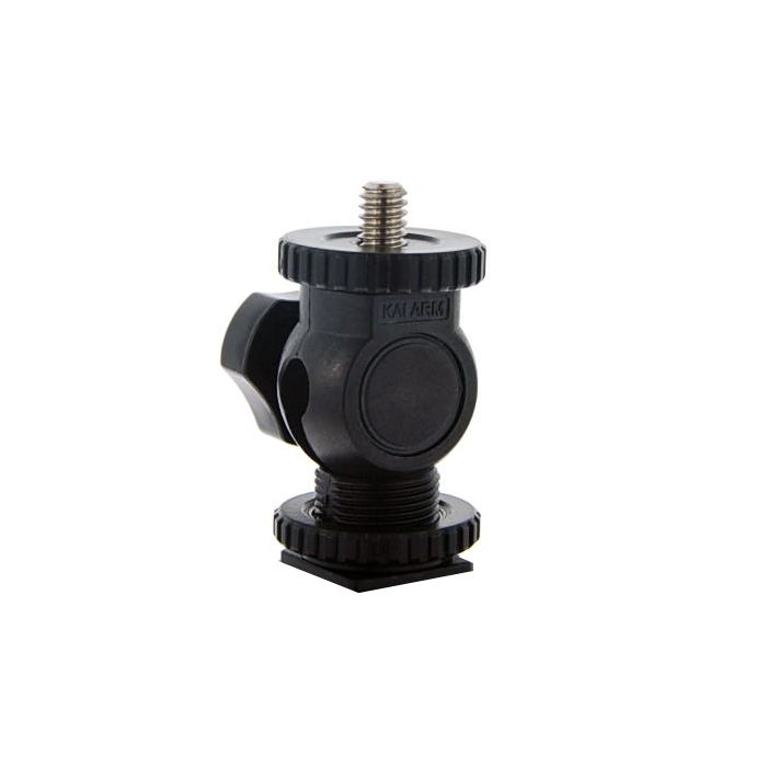Le dessus du support inclinable est doté d’un filetage mâle universel 1/4", tandis que le dessous dispose d’un filetage femelle 1/4". Cela facilite grandement l’installation sur n’importe quel trépied universel pour lampe. La fixation sur la griffe porte-accessoires de votre appareil photo se fait sans effort, ce qui vous permet d’ajouter rapidement des accessoires pour une séance photo optimale.