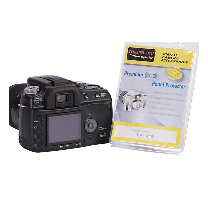 En achetant, vous recevez le Marumi LCD Protector spécialement conçu pour Sony A100, prêt à protéger votre matériel dès maintenant.