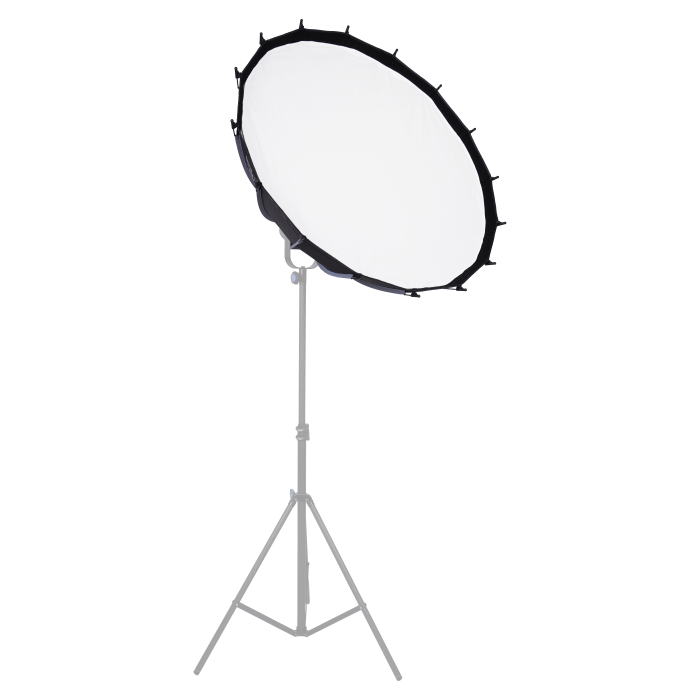 Avec ce softbox, vous adoucissez la lumière de manière optimale et la dirigez exactement comme vous le souhaitez. La grille nid d’abeille concentre davantage le faisceau. Les matériaux diffusants spéciaux assurent une répartition homogène sur toute la surface, éliminant ainsi les points chauds. Le RGX60 a un diamètre de 60 cm et une profondeur de 30 cm. Des bagues adaptatrices interchangeables de 12,9 cm de diamètre offrent une flexibilité supplémentaire.