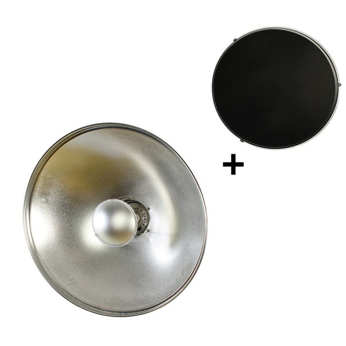StudioKing Beauty Dish Argenté SK-BD420 42 cm avec Grille en nid d'abeille