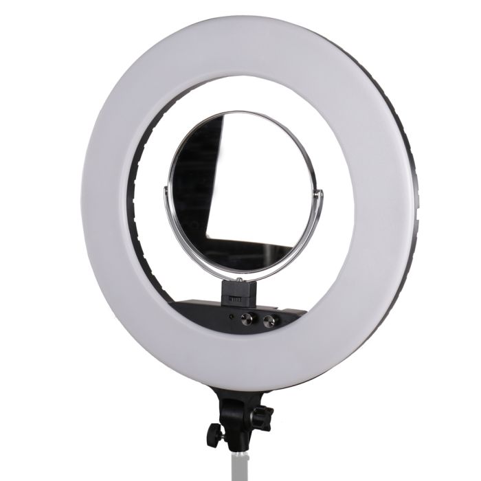 Découvrez la puissance d’une lumière parfaite avec la LED-480ASK de StudioKing ! Conçue spécialement pour les maquilleurs, modèles et vloggers, cette lampe anneau LED vous offre tout ce qu’il faut pour un look éblouissant. Grâce au miroir grossissant et au support smartphone inclus, placez votre appareil facilement pour une séance maquillage idéale et un beauty vlog au top. Profitez d’une lumière forte et naturelle qui sublime votre visage. Installez même un appareil photo DSLR avec l’adaptateur mâle 1/4”, disponible dans les accessoires optionnels. Fixez rapidement des accessoires supplémentaires via le pas de vis femelle 1/4” à l’avant et au-dessus ou la griffe cold shoe sur la partie supérieure. La douille avec support inclinable permet de fixer la lampe sur n’importe quel pied d’éclairage.