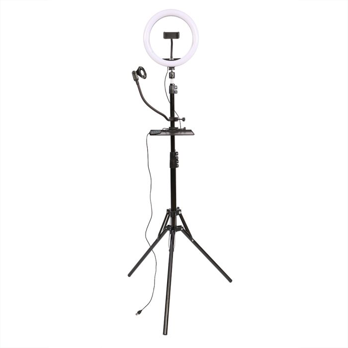 Ne cherchez plus de place pour vos accessoires indispensables. Le plateau fourni garde tout ce qui vous sert à portée de main, que ce soit vos produits de maquillage, les articles que vous voulez montrer ou le matériel nécessaire à vos projets créatifs. Associez-le au support microphone facile à monter (microphone vendu séparément) pour une installation complète.