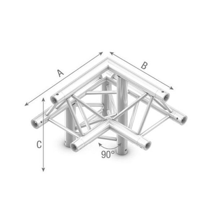 Pour conclure, le Studioking Truss Triangle 90 Degrés Angle Descendant Gauche Haut Montant combine parfaitement fonctionnalité et robustesse. Avec ce coin, vous construisez des structures truss solides et fiables, prêtes à relever tous les défis de vos événements ou installations.